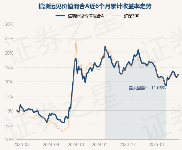 本站消息,1月27日,信澳远见价值混合A最新单位净值为0.8348元,累计净值为0.8348元,较前一交易日下跌0.05%。历史数据显示该基金近1个月下跌3.4%,近3个月下跌2.1%,近6个月上涨12.29%,近1年上涨10.18%。该基金近6个月的累计收益率走势如下图: